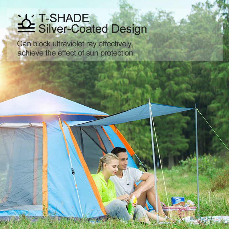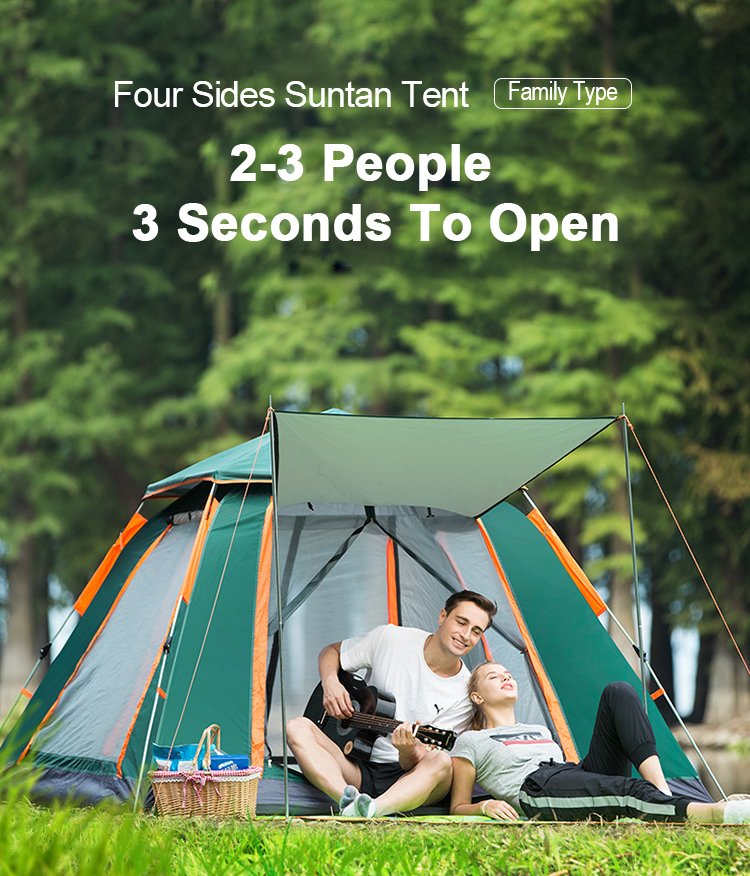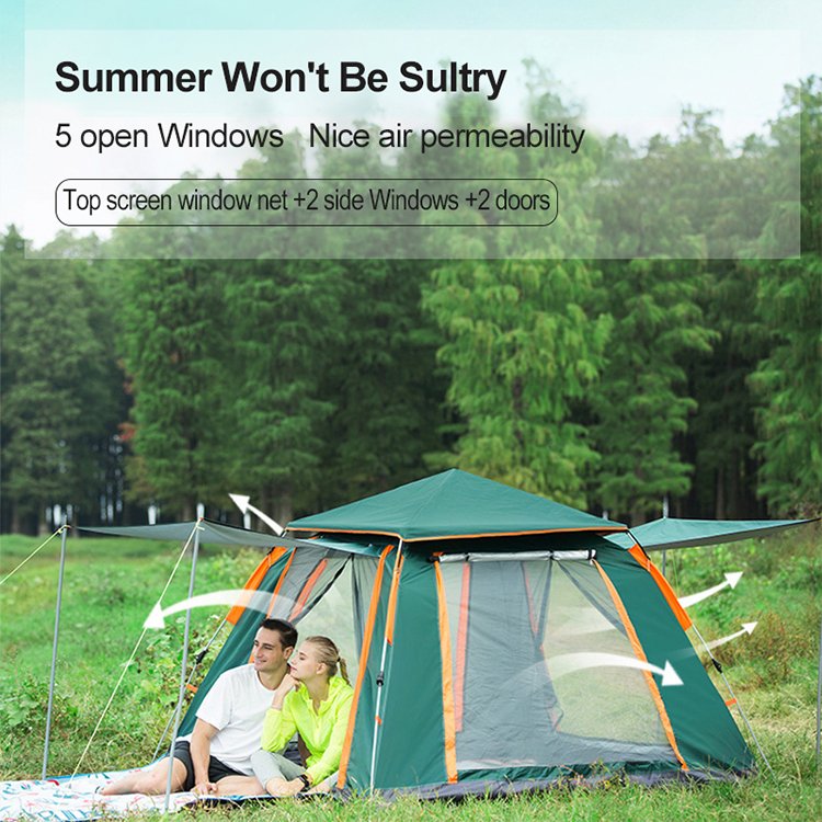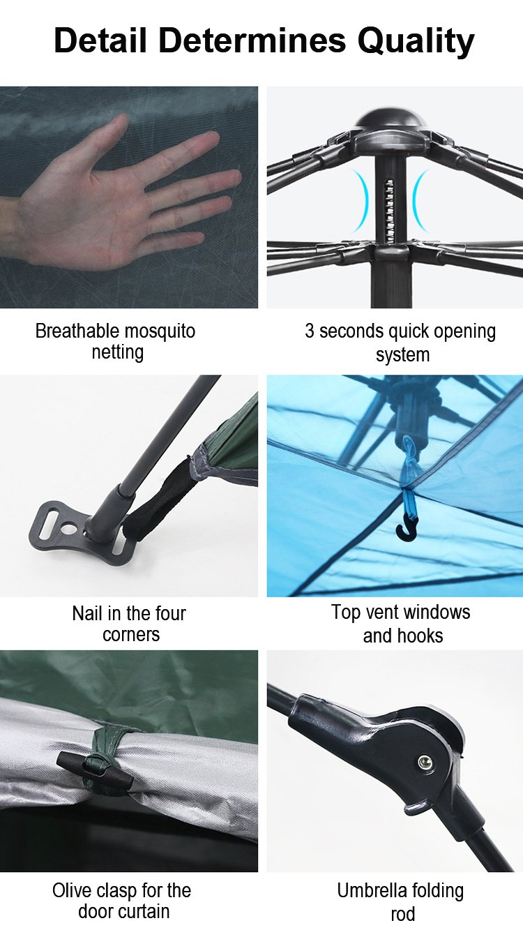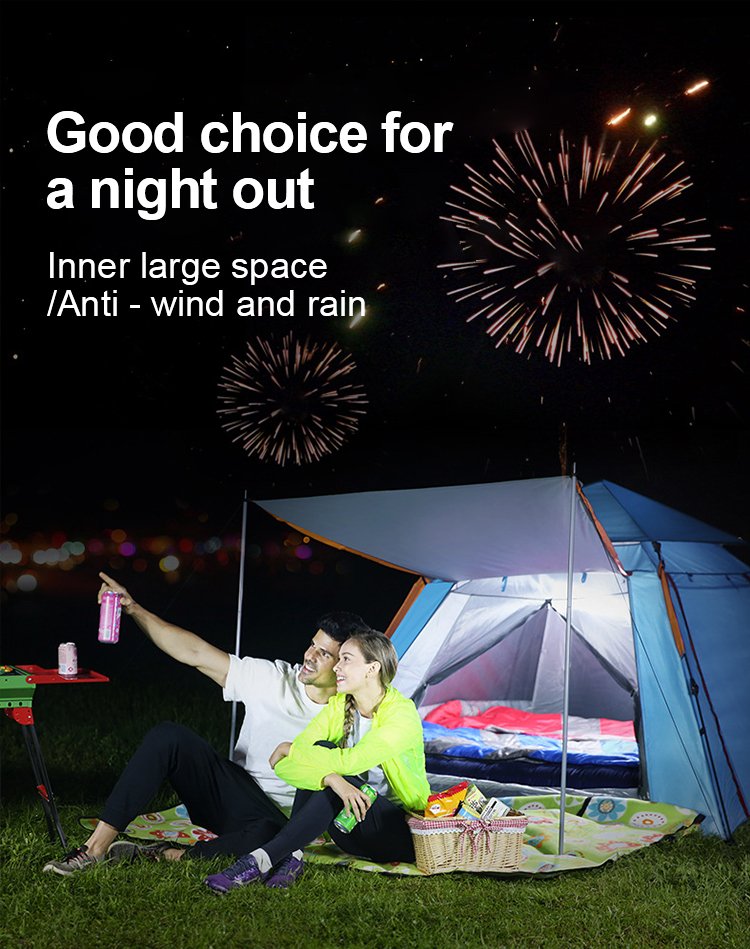 The tent is equipped with a storage bag and ground nail windproof rope, which has high wind resistance