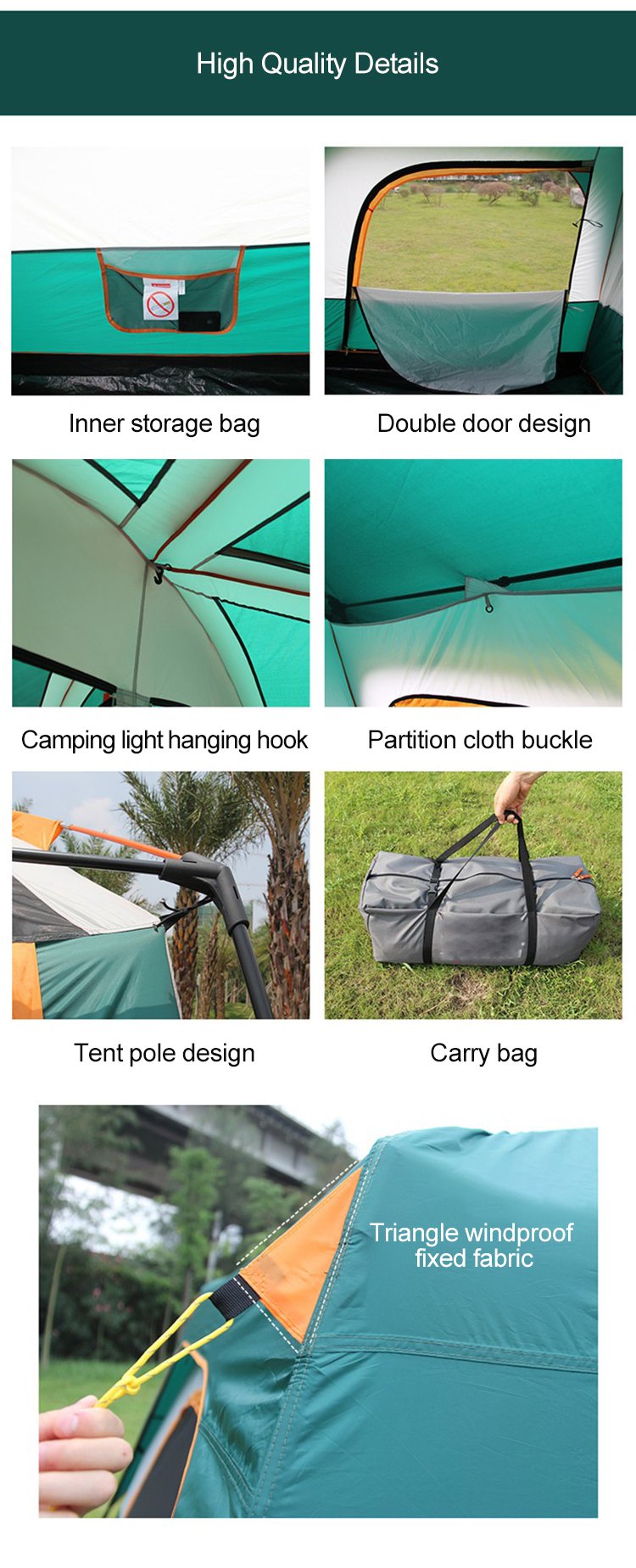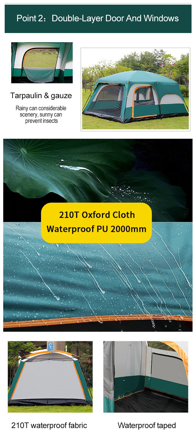 Inner tent: 210T Oxford cloth, PU 2000mm