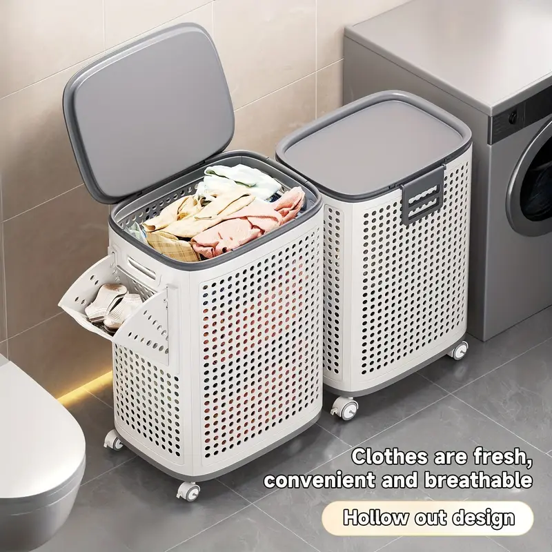 Foldable Large White Laundry Baskets 70L