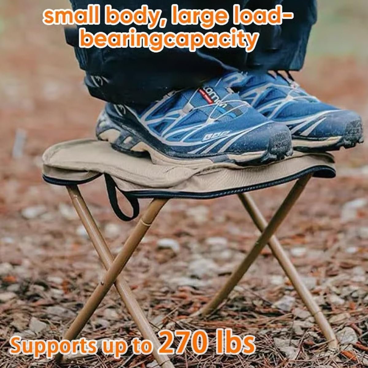 - 【Compact but Powerful】Strong yet lightweight camping stool. Folds into a sleek carry-on bag, just a little bigger than a phone. Unfolds into a sturdy seat that easily supports up to (100 kg).