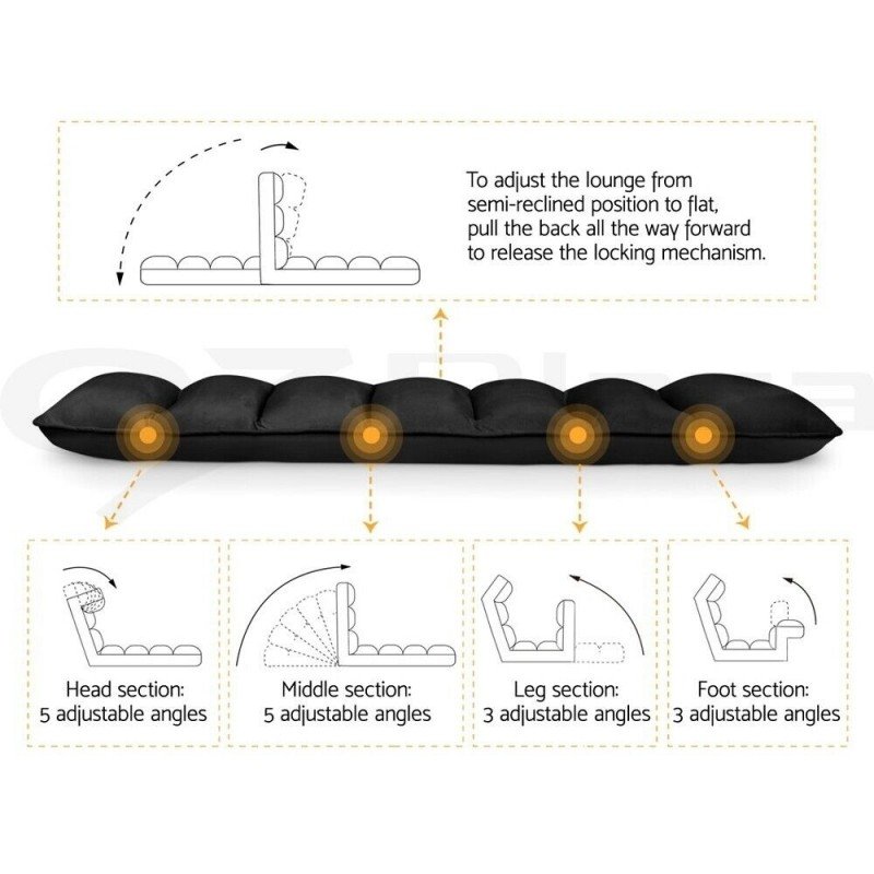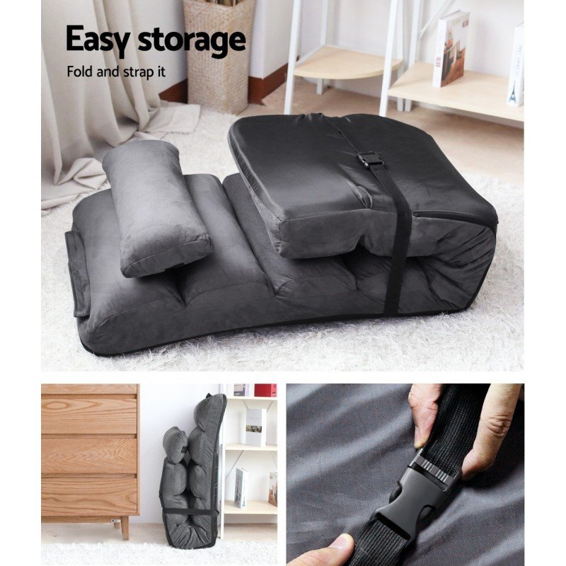 Feel relaxed with a sofa lounge chair professionally designed for your comfort. Provided with locking mechanism that can be easily adjusted from semi-reclined to flat position for sleeping. Multiple angle positions for head, middle, leg or even foot section. It is also space-saving and can be Fold inward and tied the built-in strap for easy storage
