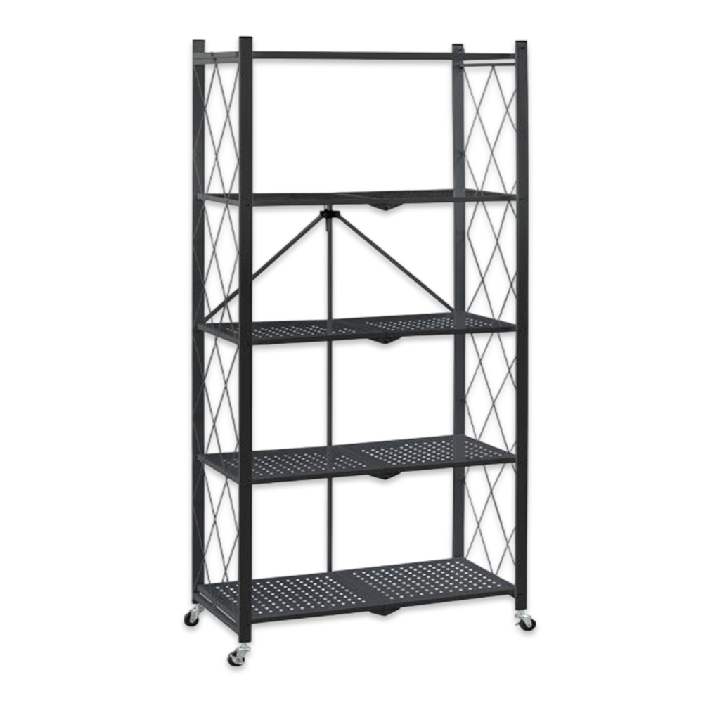 • 5 Tiers Foldable Multi-Tiers Metal Storage Rack with Wheels