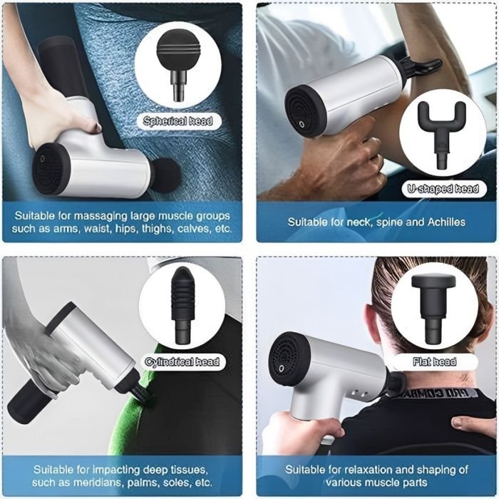 The Massage Gun is a handheld deep tissue massager that can work any part of the body. With 4 different head attachments, you can reach any muscle and get as fine-tuned as you like working out heavy knots or activating those tight muscles.